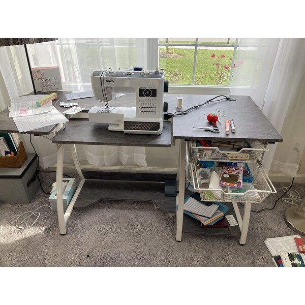 Pro Stitch Sewing Hobby And Computer Table With Folding Shelf And Wire Baskets In White Concrete Item 13382 Studio Designs