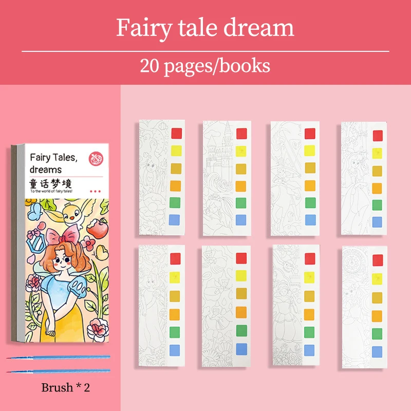 6 Color Travel Solid Watercolor Book Paint Set Line Drawing Pigment Coloring Book With Paint Brush Children Art Supplies 20sheet Water Color Aliexpress